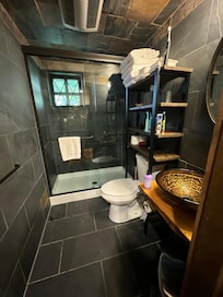 A really nice cozy vibe. Very clean and updated. Really cool and unique place including the cabin and its surrounding areas.